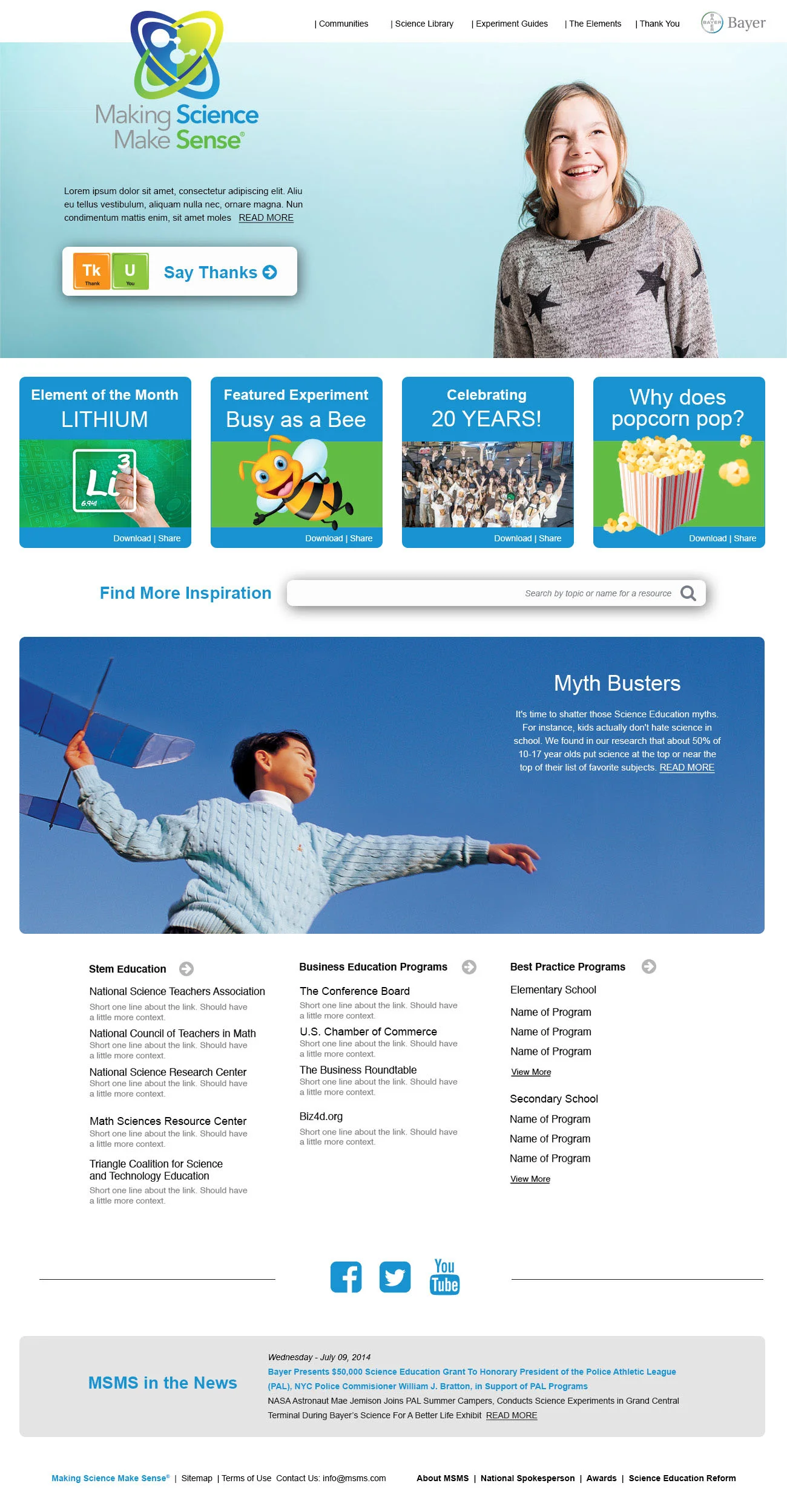 Project management for Bayers education campaign, Making Science Make Sense.